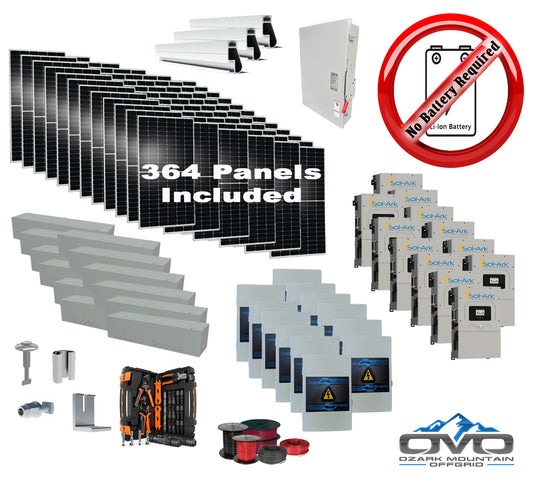 200KW Complete Offgrid Solar Kit + 12x 15K Sol-Ark Inverter +2x 32kWh OMO 48V Freedom Series Lithium Battery + 200.2KW Solar with Ground Mount Rails and WiringThis Package is a great package for a ...